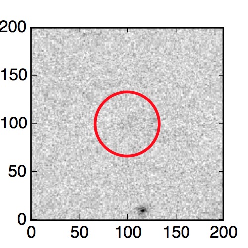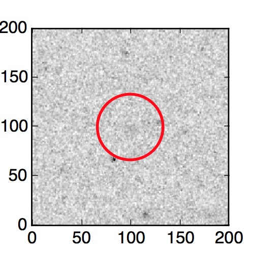 The red circle in the various panels is 1" in radius. The images are 6"x6".