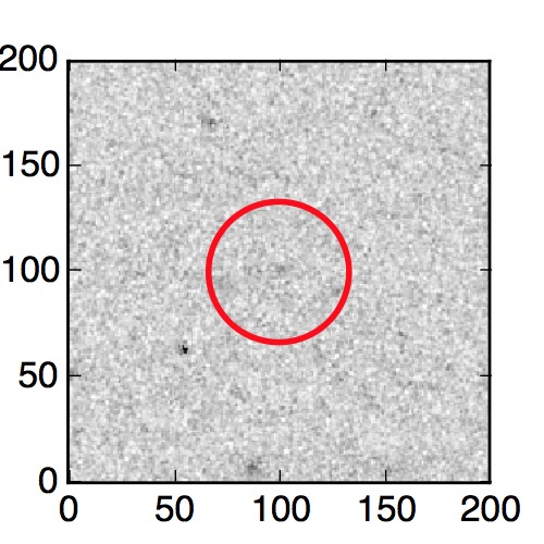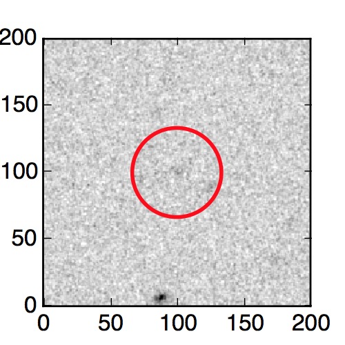 The red circle in the various panels is 1" in radius. The images are 6"x6".