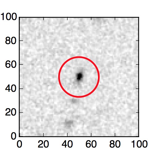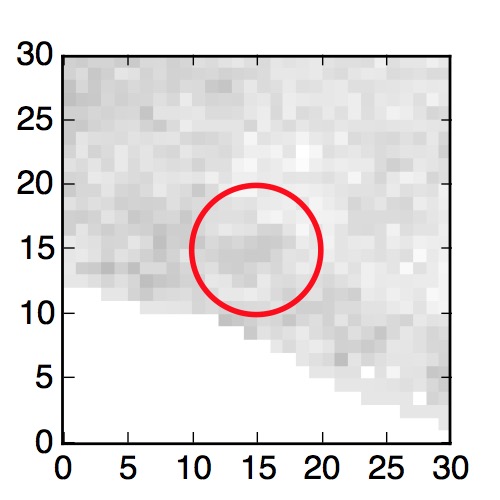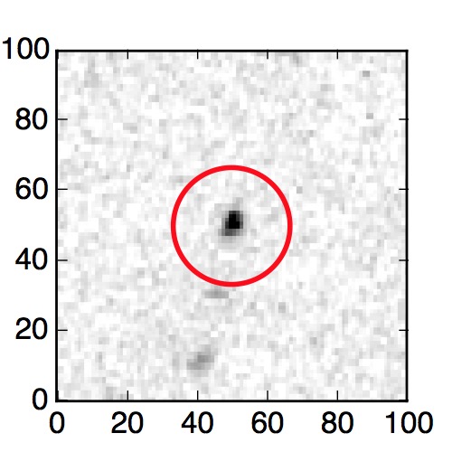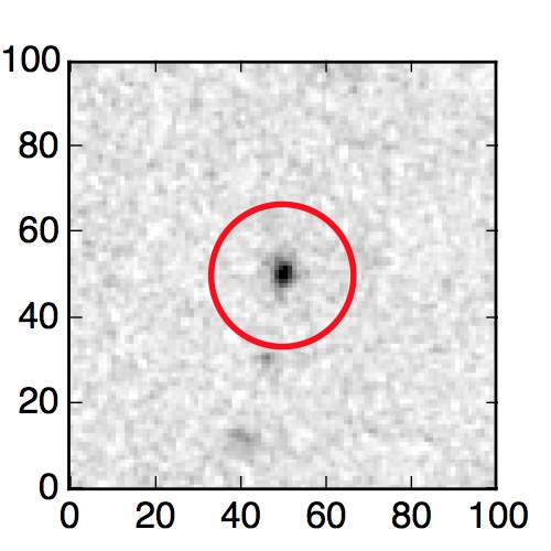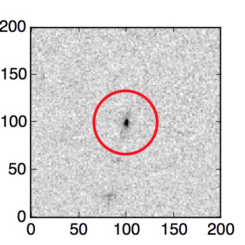 The red circle in the various panels is 1" in radius. The images are 6"x6".