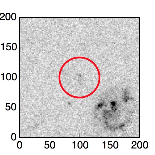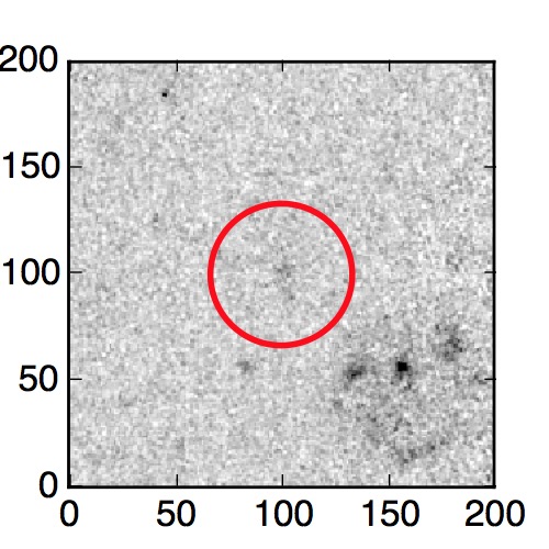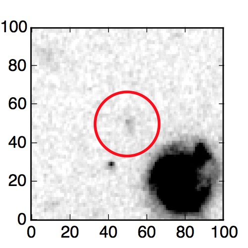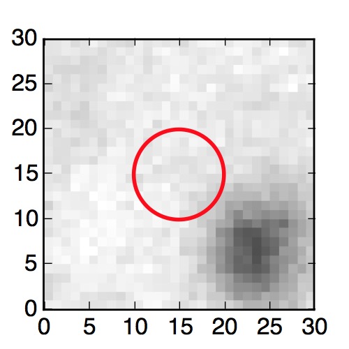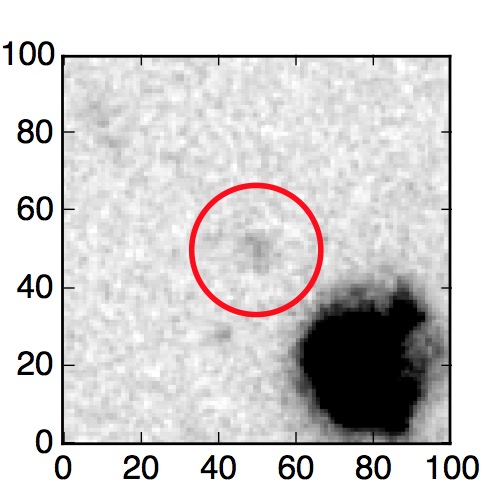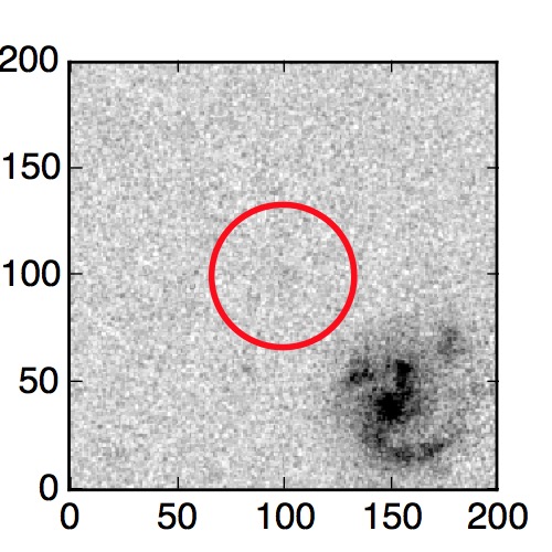 The red circle in the various panels is 1" in radius. The images are 6"x6".