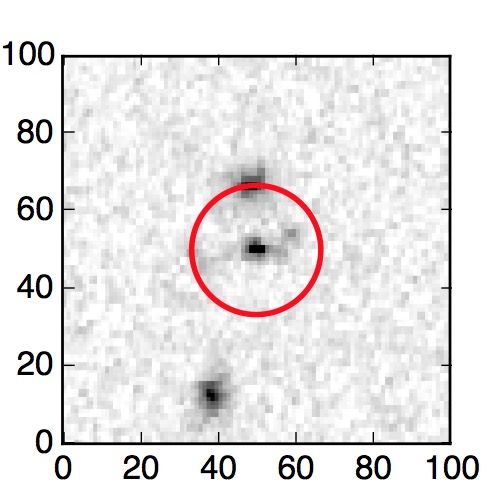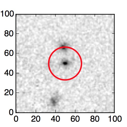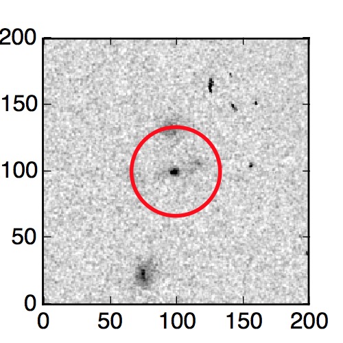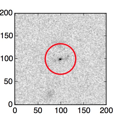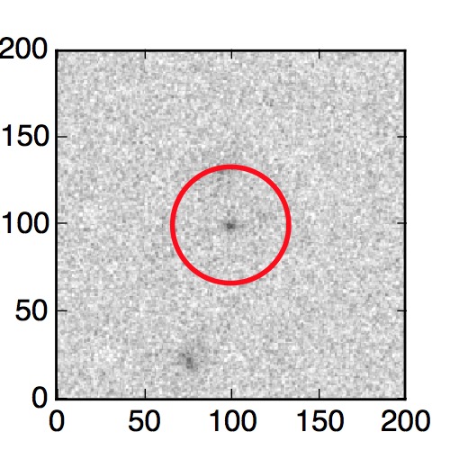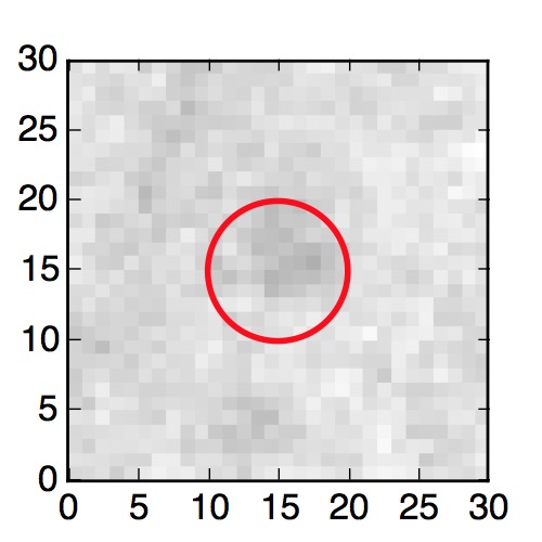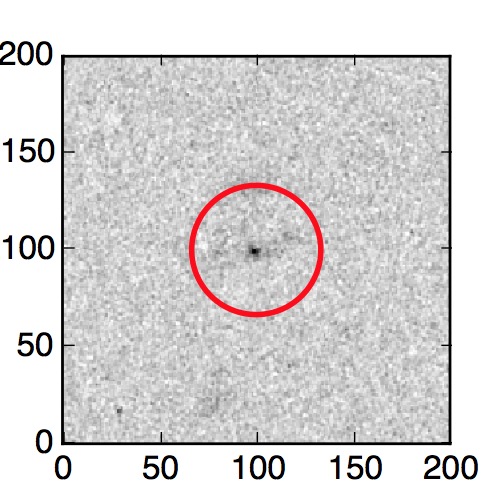 The red circle in the various panels is 1" in radius. The images are 6"x6".