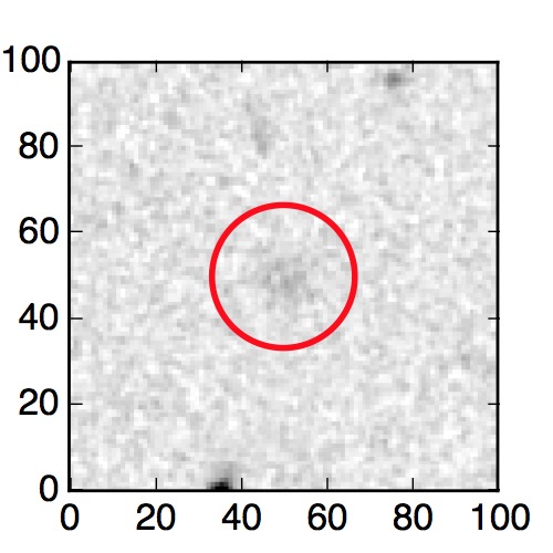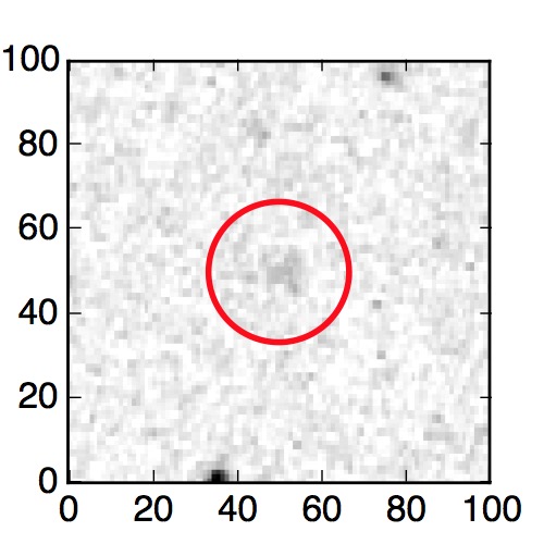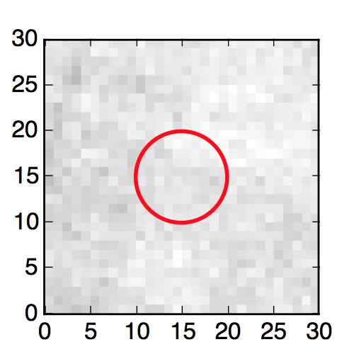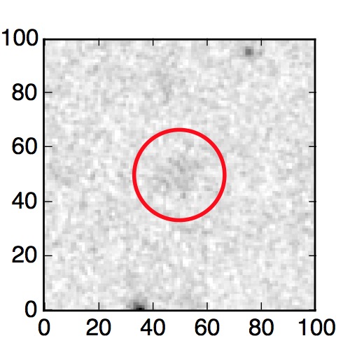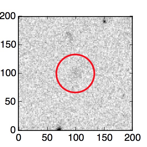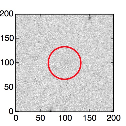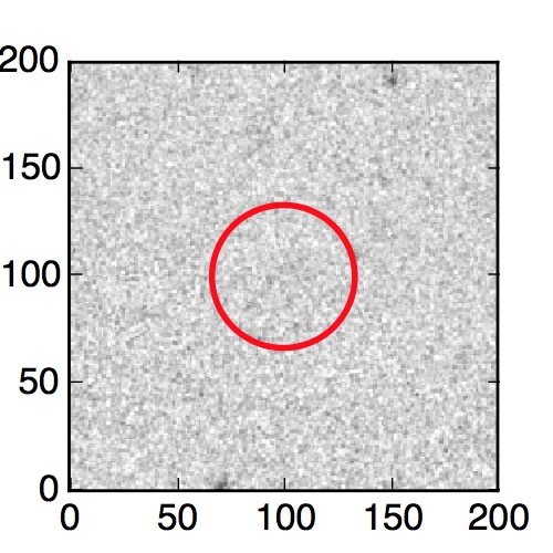 The red circle in the various panels is 1" in radius. The images are 6"x6".
