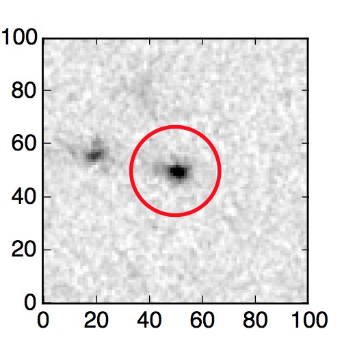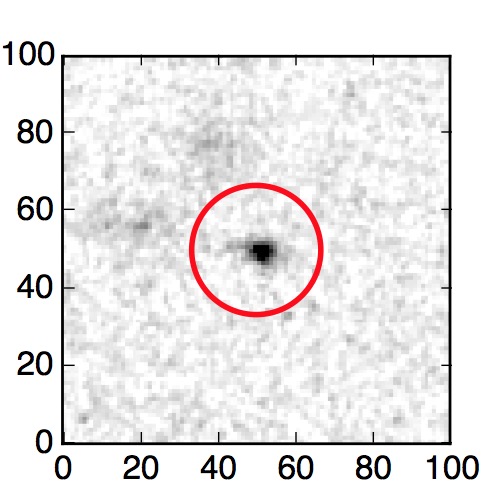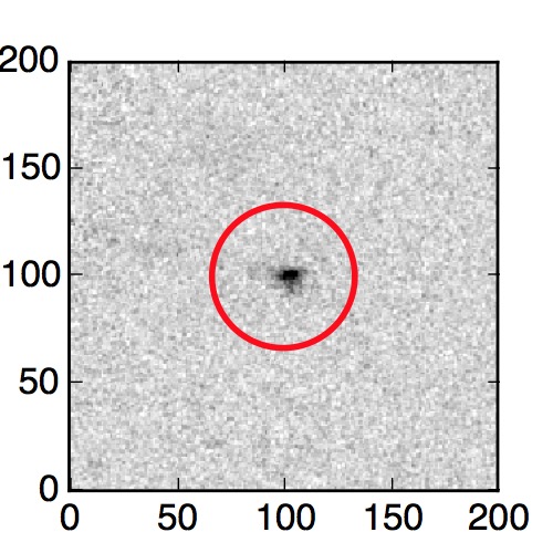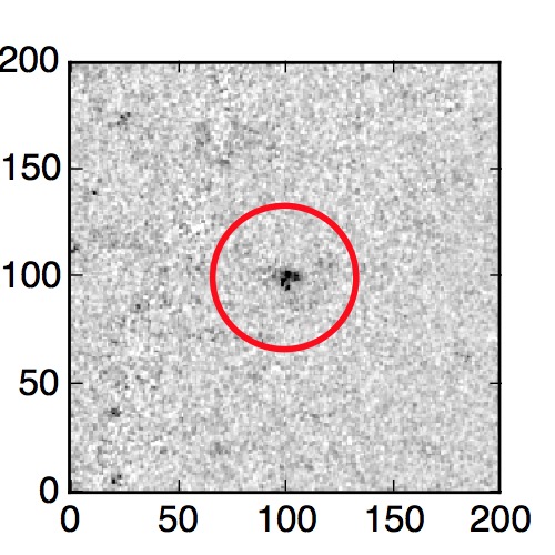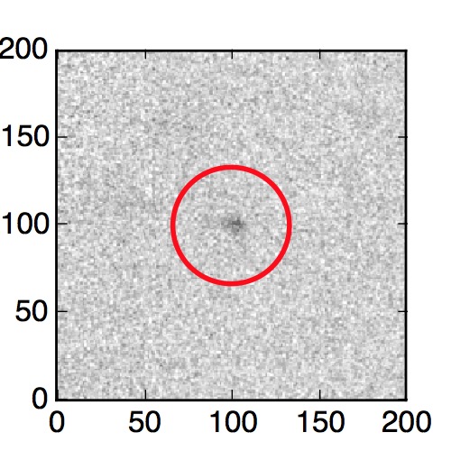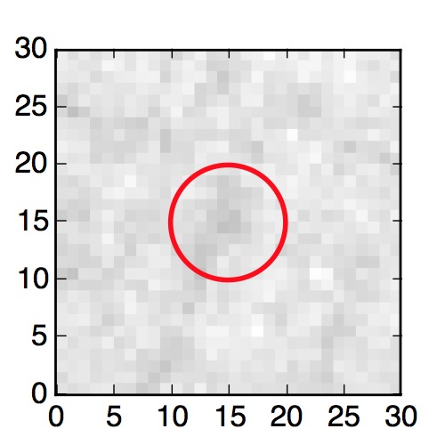 The red circle in the various panels is 1" in radius. The images are 6"x6".