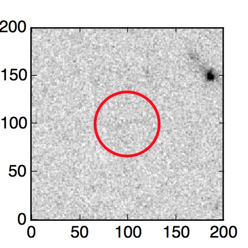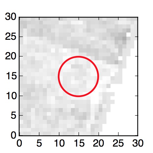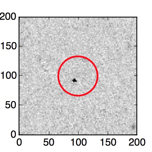 The red circle in the various panels is 1" in radius. The images are 6"x6".
