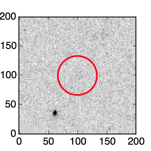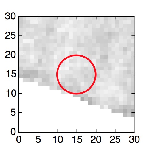 The red circle in the various panels is 1" in radius. The images are 6"x6".