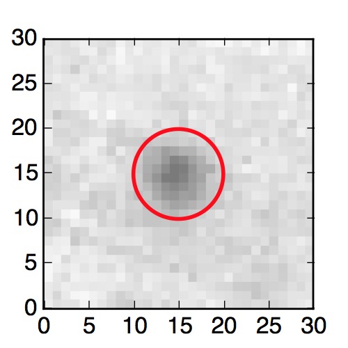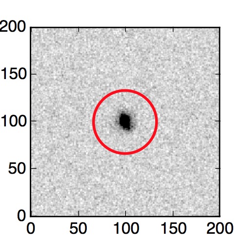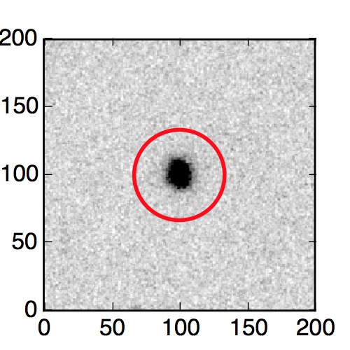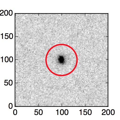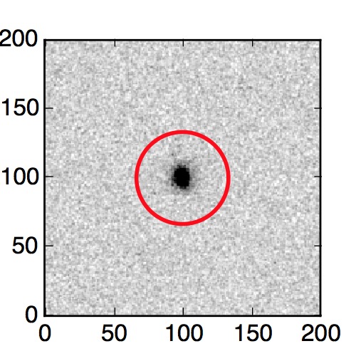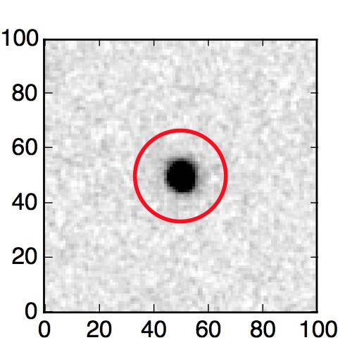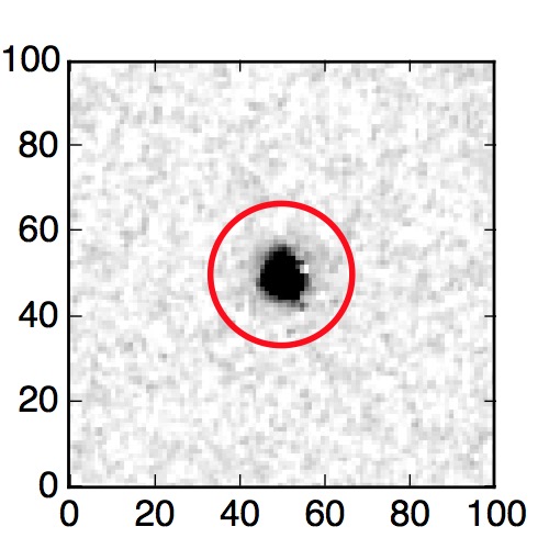 The red circle in the various panels is 1" in radius. The images are 6"x6".