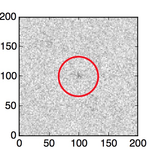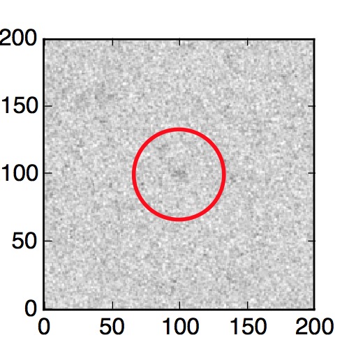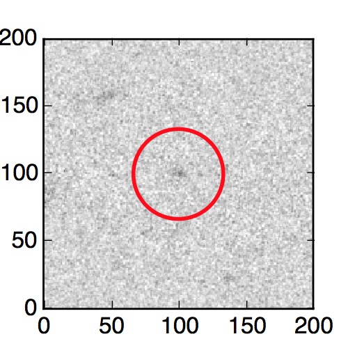 The red circle in the various panels is 1" in radius. The images are 6"x6".