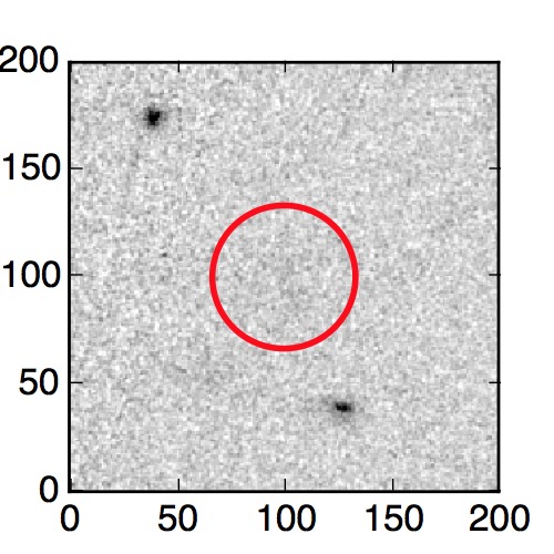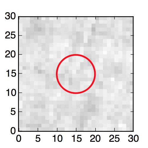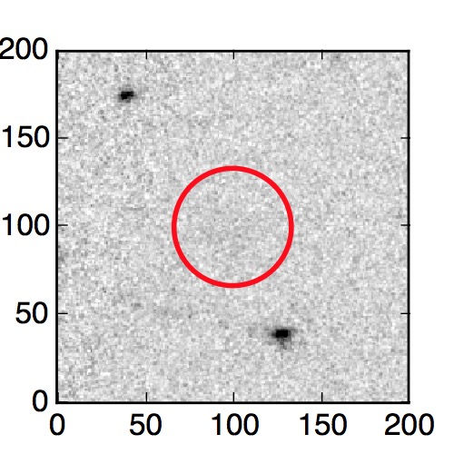The red circle in the various panels is 1" in radius. The images are 6"x6".