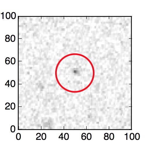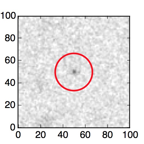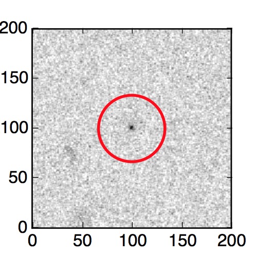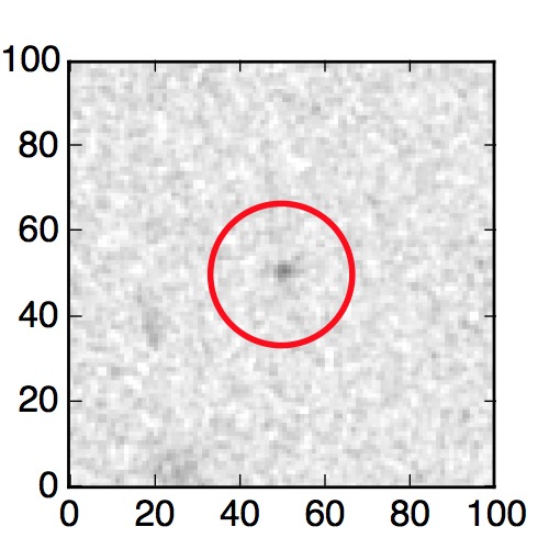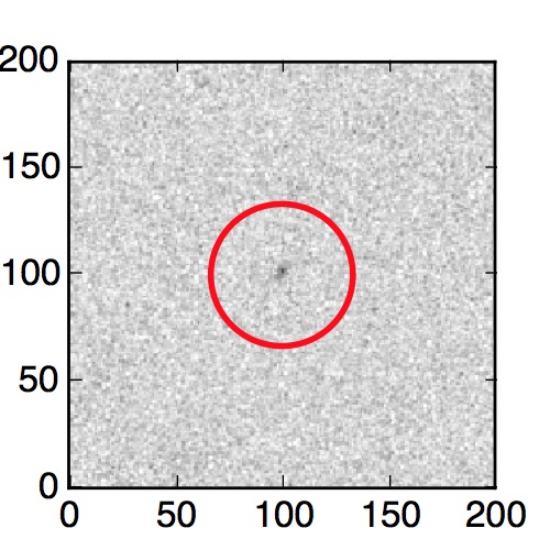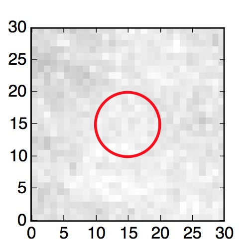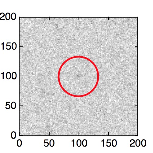 The red circle in the various panels is 1" in radius. The images are 6"x6".