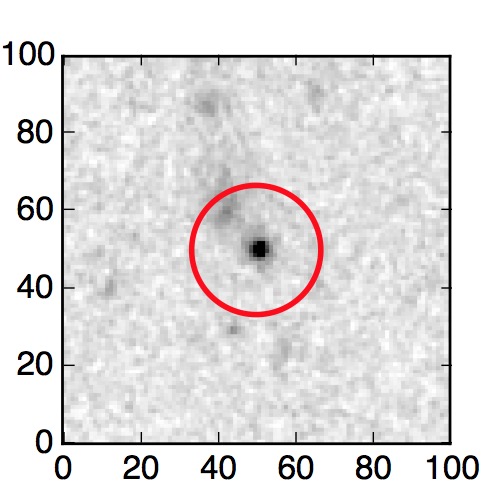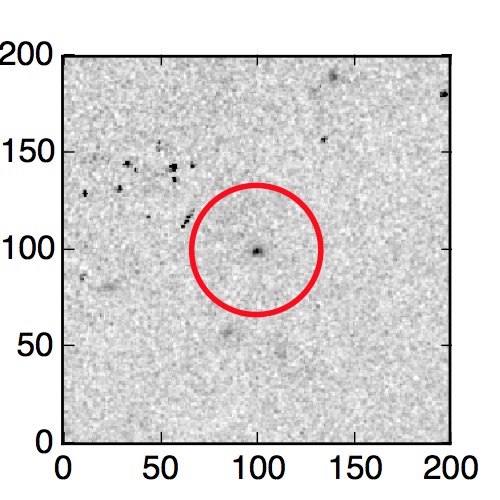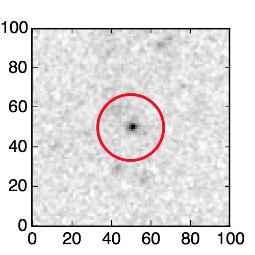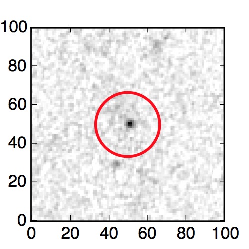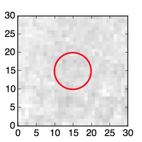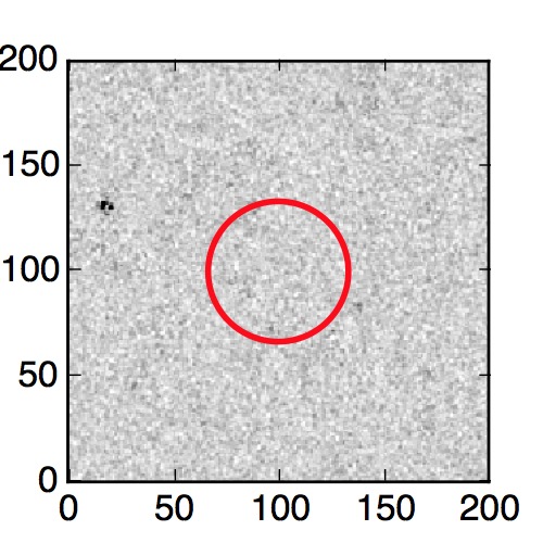 The red circle in the various panels is 1" in radius. The images are 6"x6".