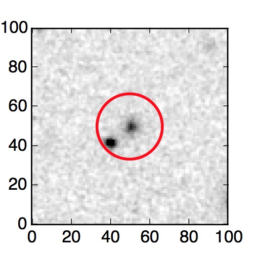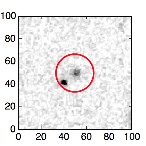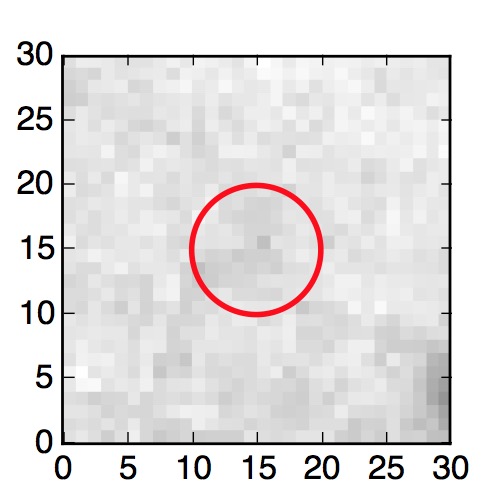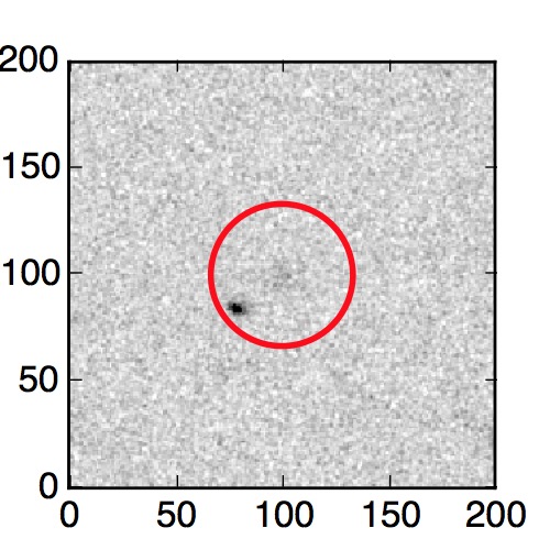The red circle in the various panels is 1" in radius. The images are 6"x6".