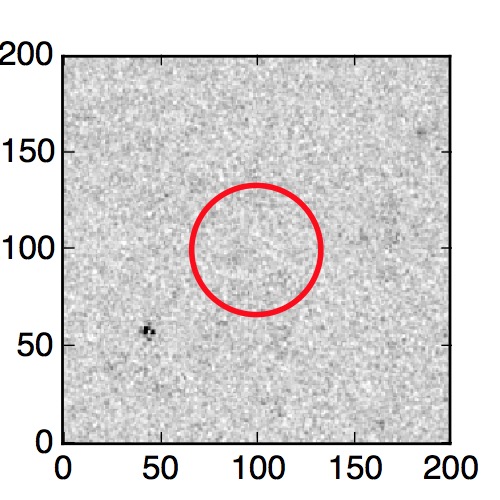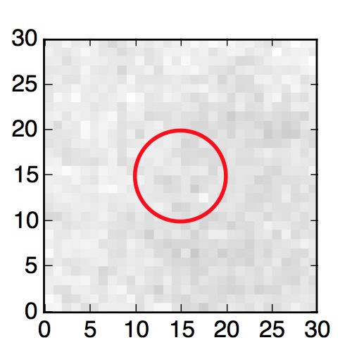 The red circle in the various panels is 1" in radius. The images are 6"x6".