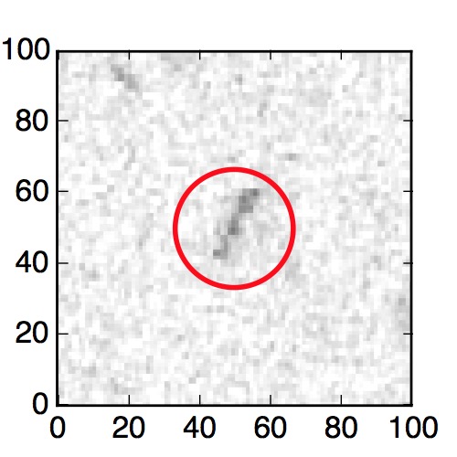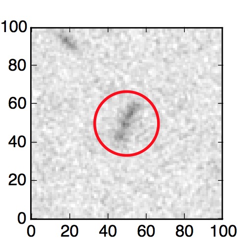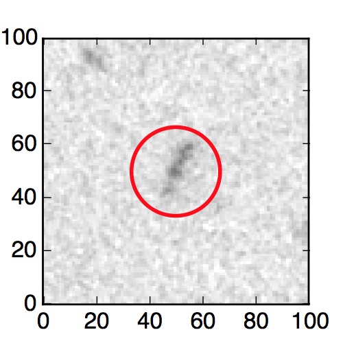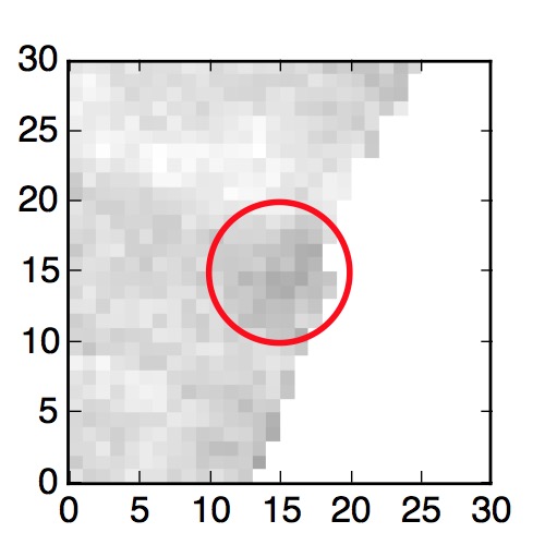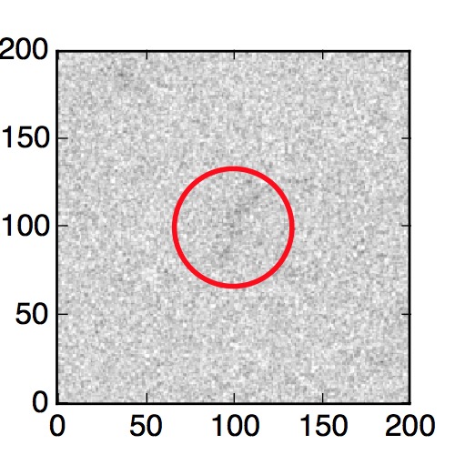 The red circle in the various panels is 1" in radius. The images are 6"x6".