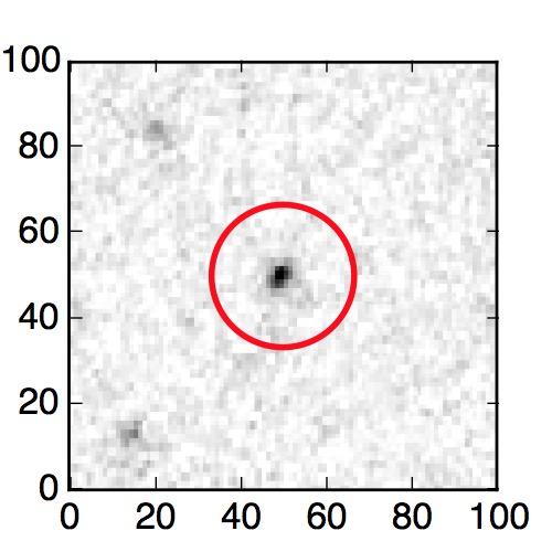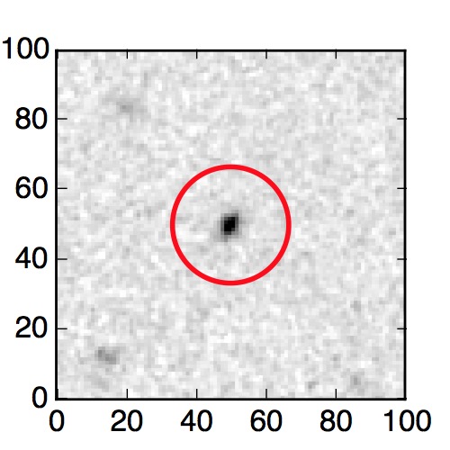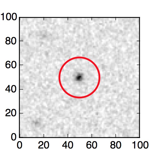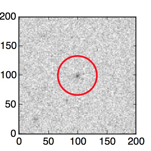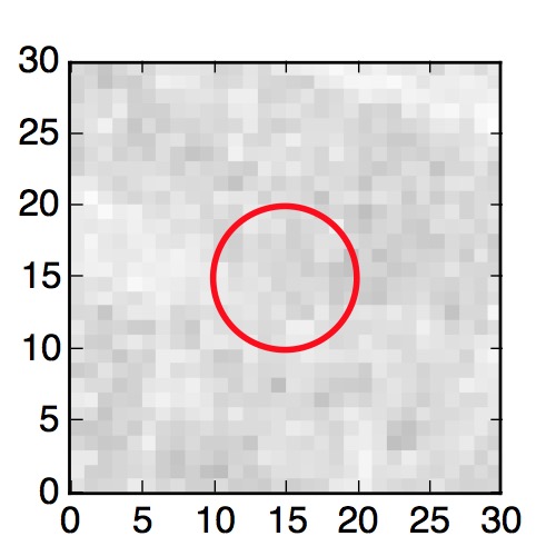 The red circle in the various panels is 1" in radius. The images are 6"x6".