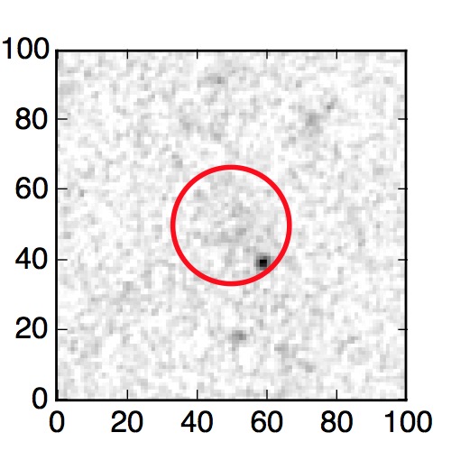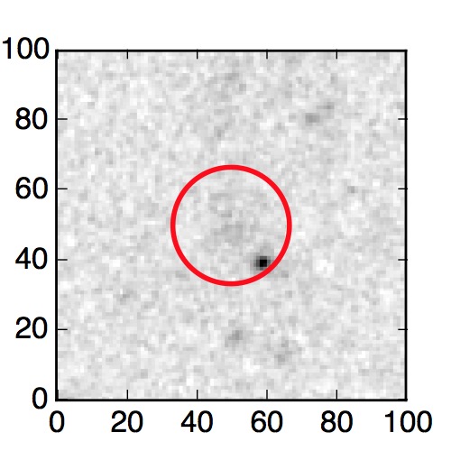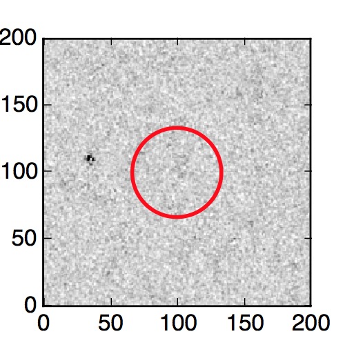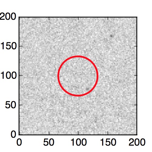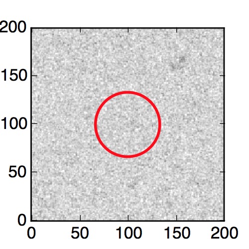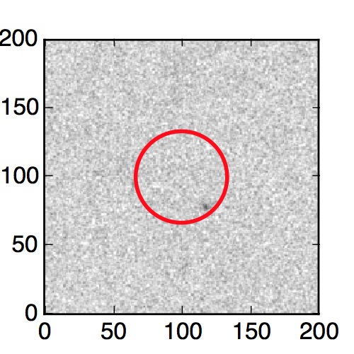 The red circle in the various panels is 1" in radius. The images are 6"x6".