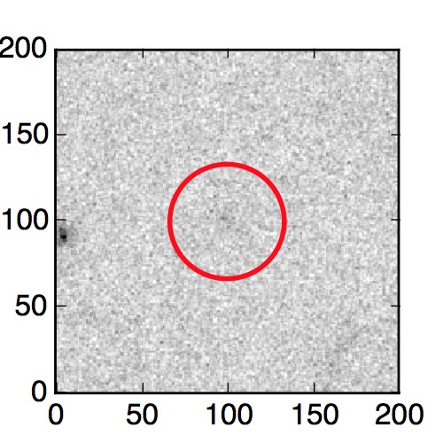 The red circle in the various panels is 1" in radius. The images are 6"x6".