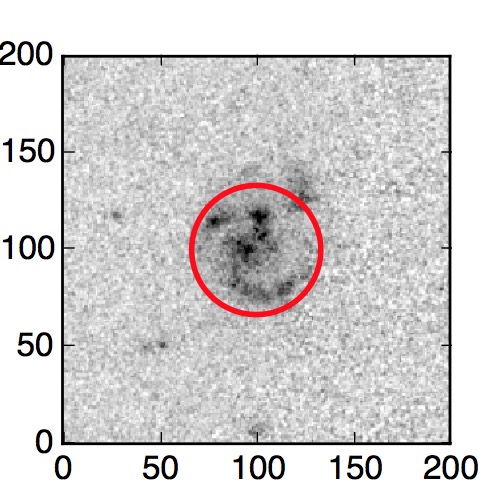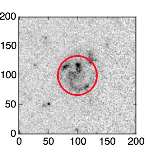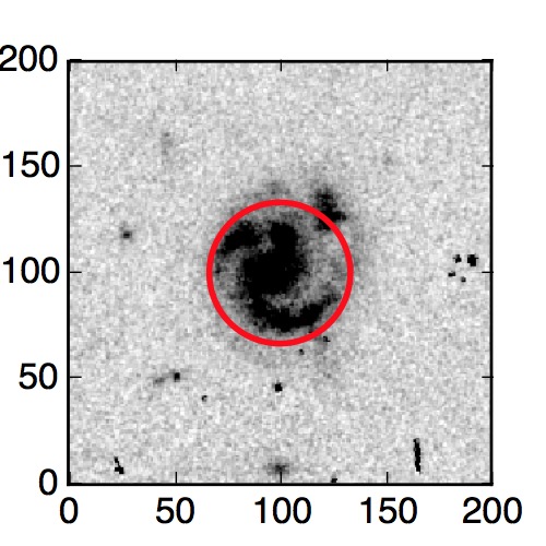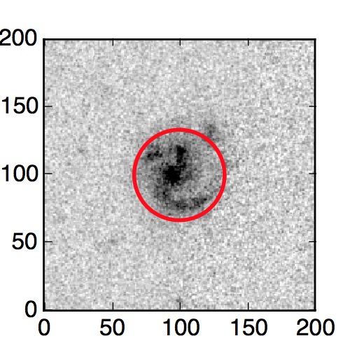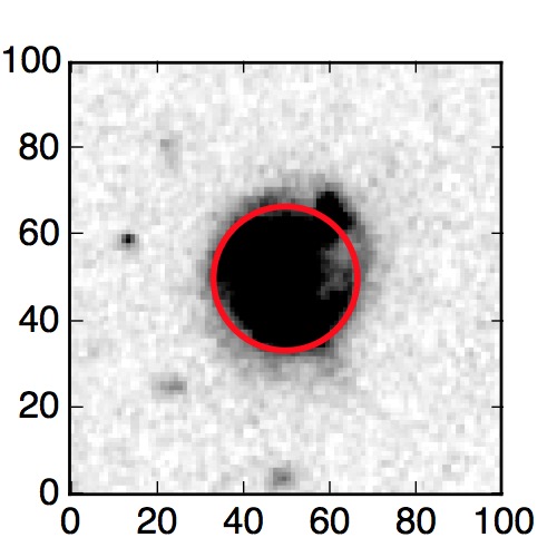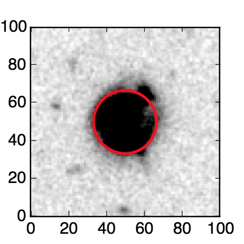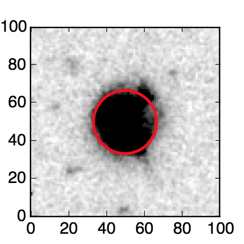 The red circle in the various panels is 1" in radius. The images are 6"x6".