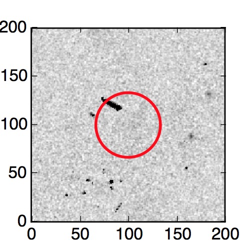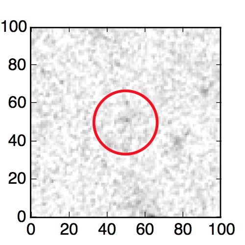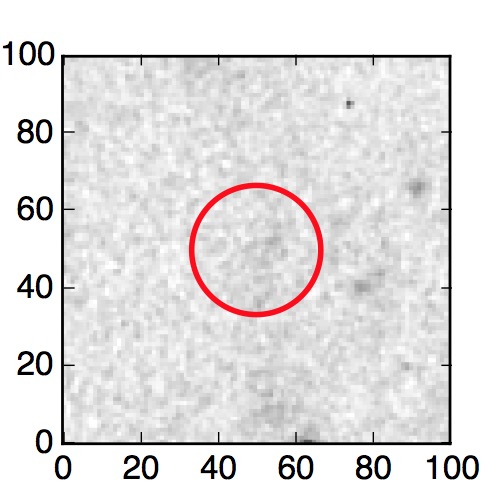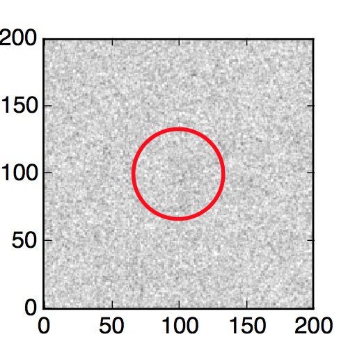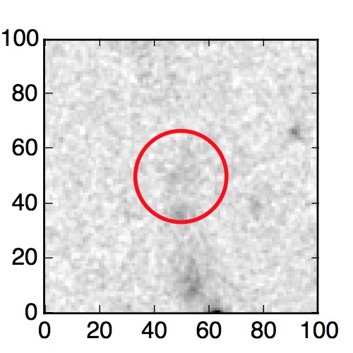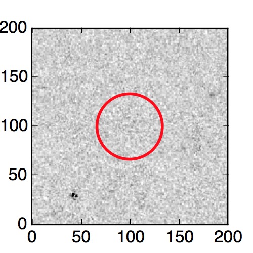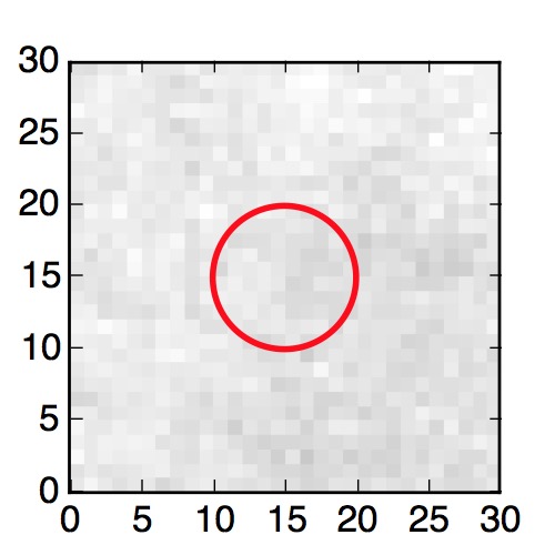 The red circle in the various panels is 1" in radius. The images are 6"x6".