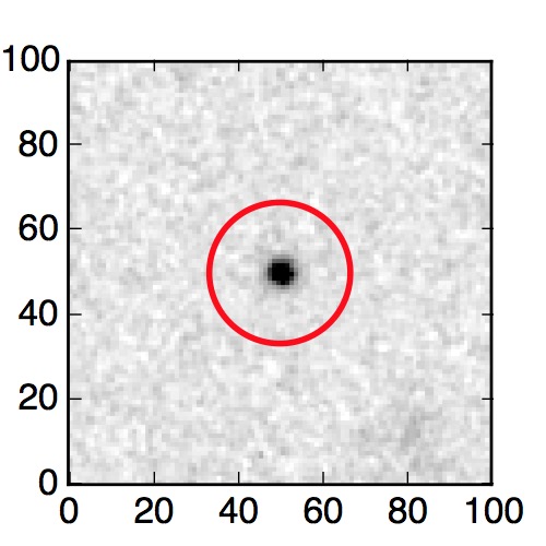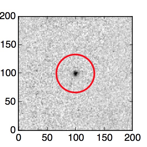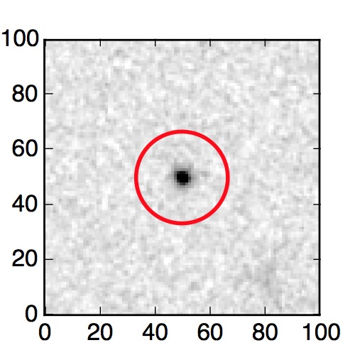 The red circle in the various panels is 1" in radius. The images are 6"x6".