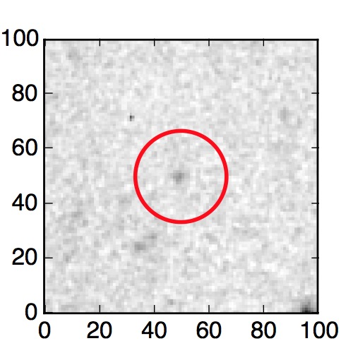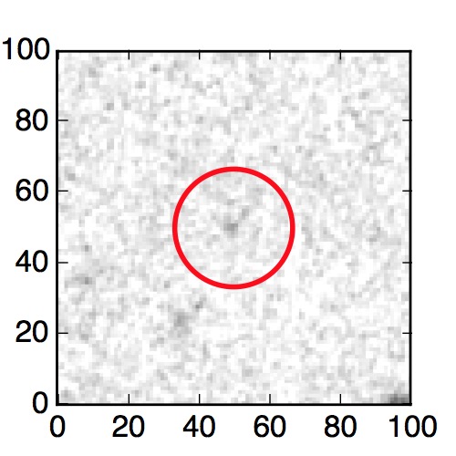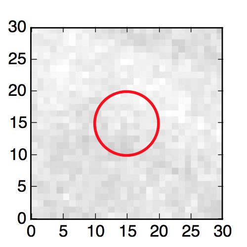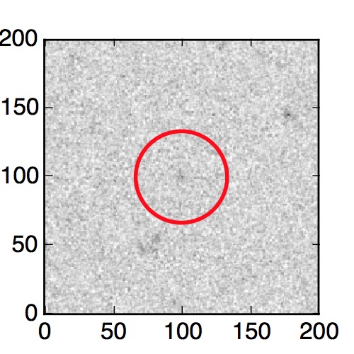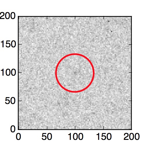 The red circle in the various panels is 1" in radius. The images are 6"x6".