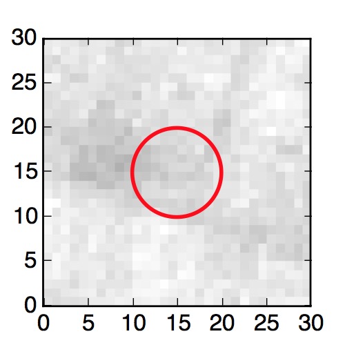 The red circle in the various panels is 1" in radius. The images are 6"x6".