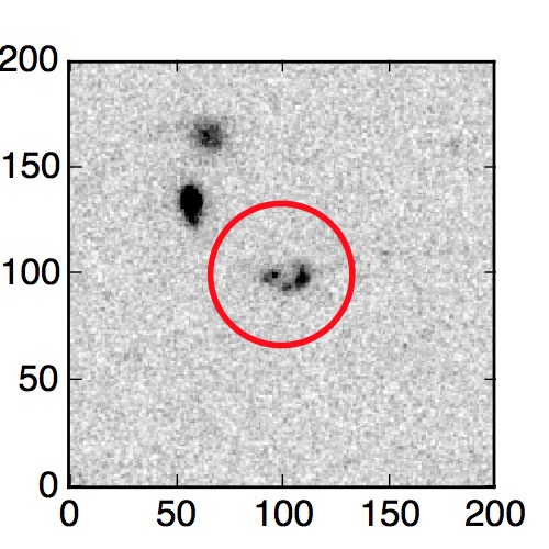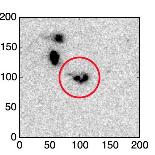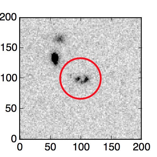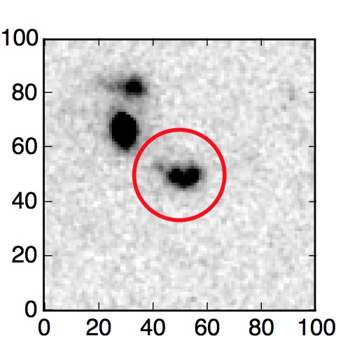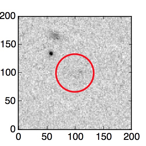 The red circle in the various panels is 1" in radius. The images are 6"x6".