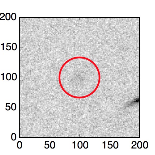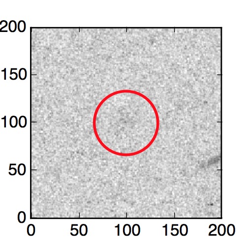 The red circle in the various panels is 1" in radius. The images are 6"x6".