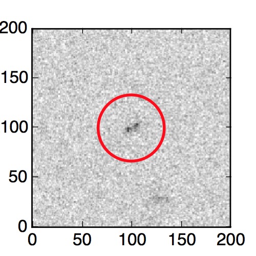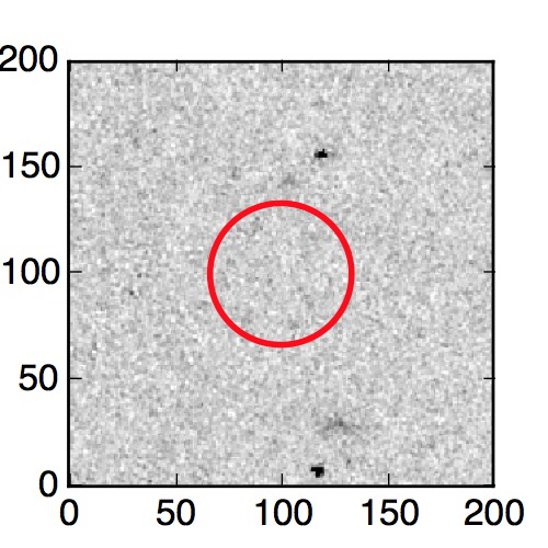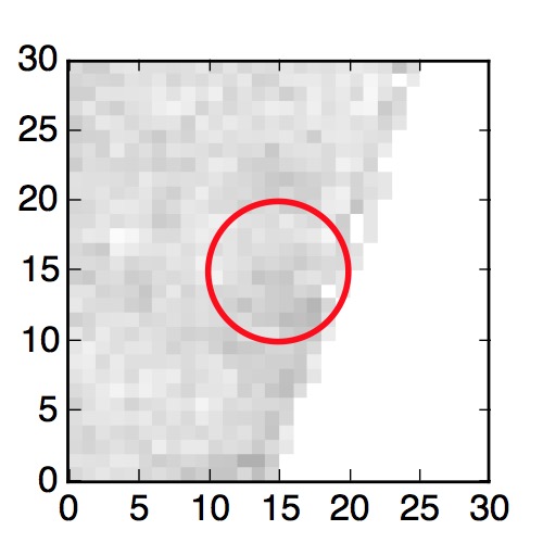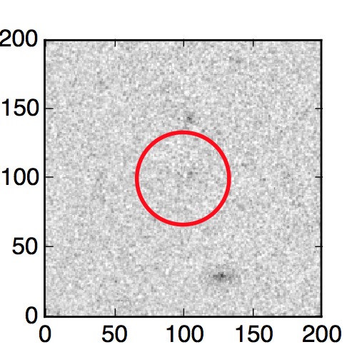 The red circle in the various panels is 1" in radius. The images are 6"x6".