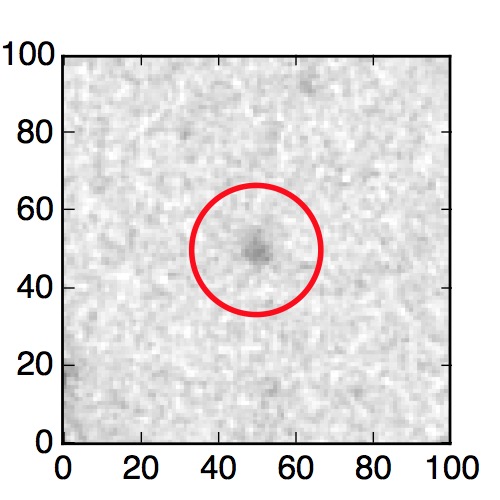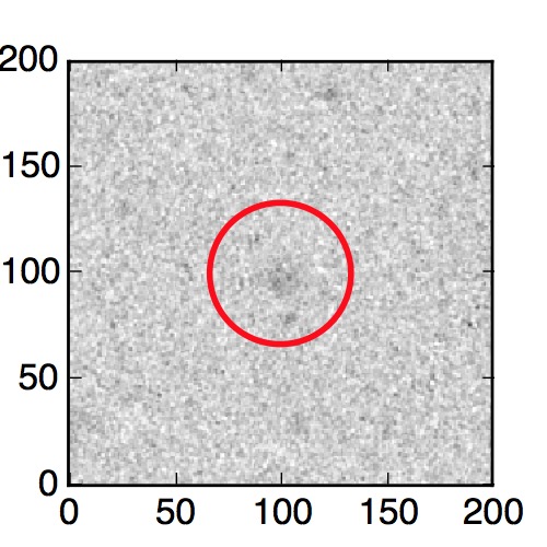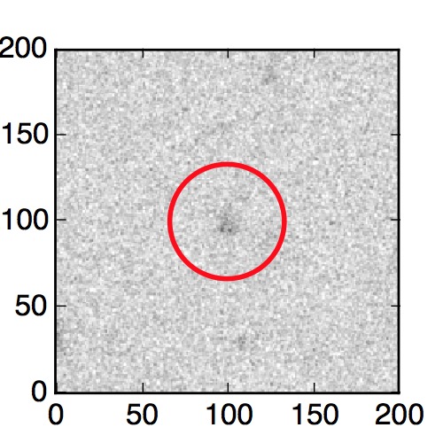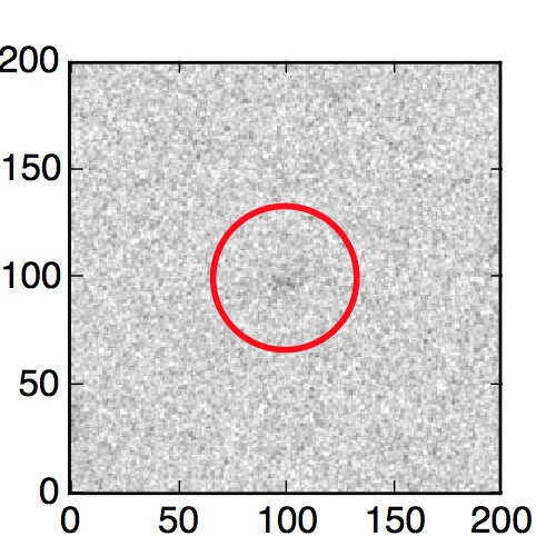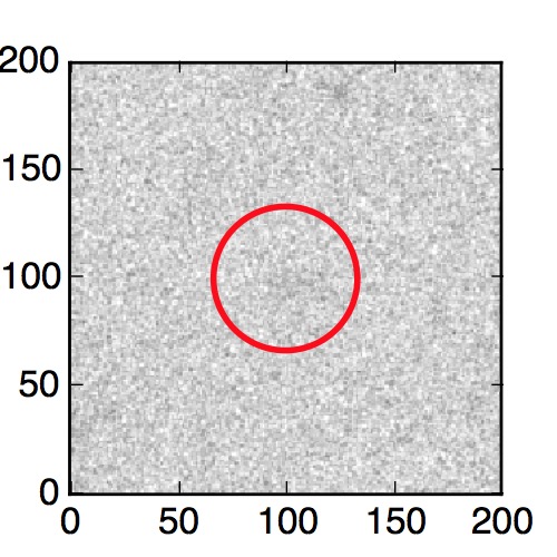 The red circle in the various panels is 1" in radius. The images are 6"x6".