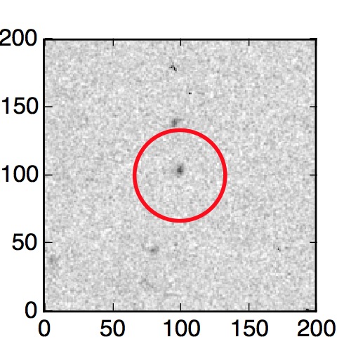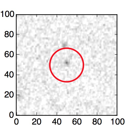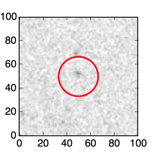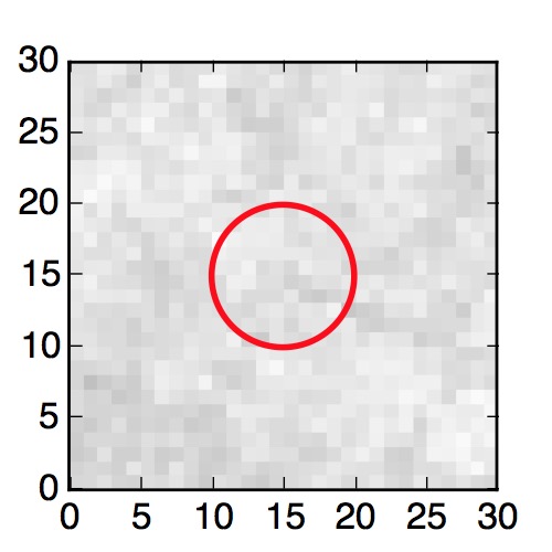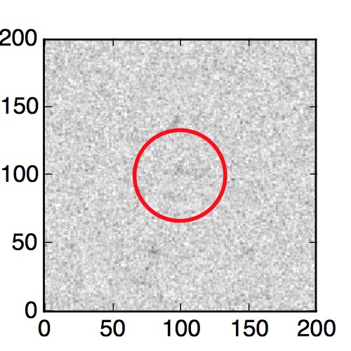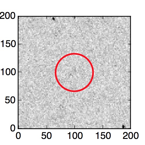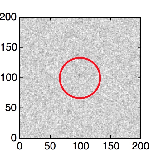 The red circle in the various panels is 1" in radius. The images are 6"x6".