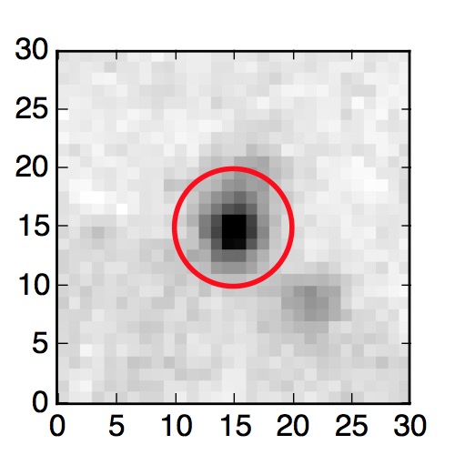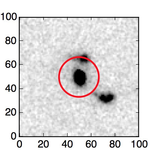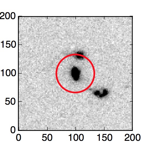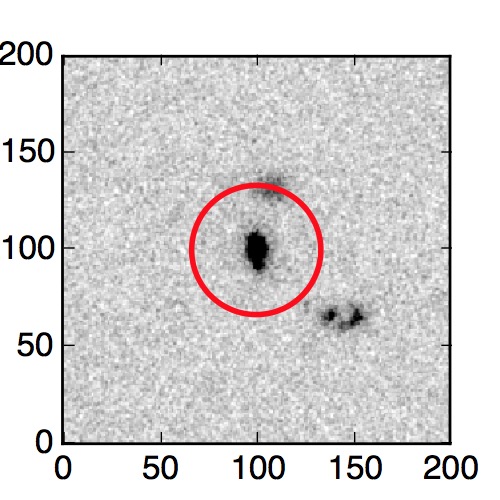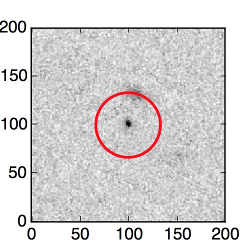 The red circle in the various panels is 1" in radius. The images are 6"x6".