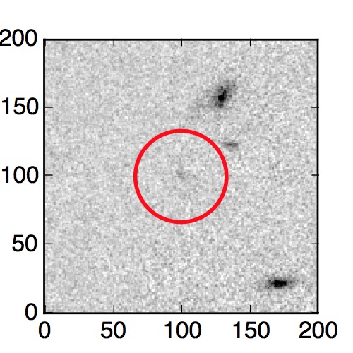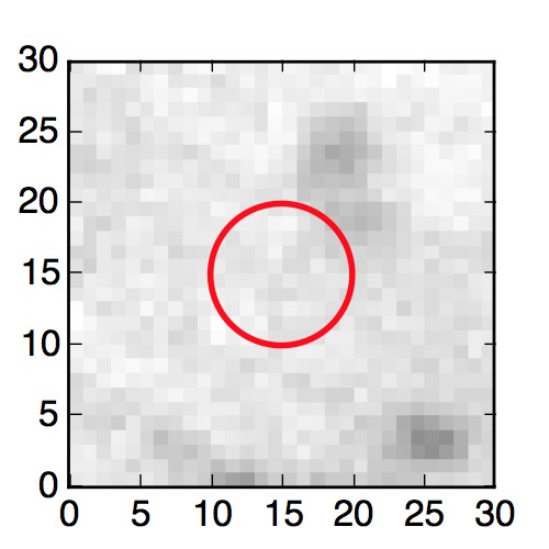The red circle in the various panels is 1" in radius. The images are 6"x6".