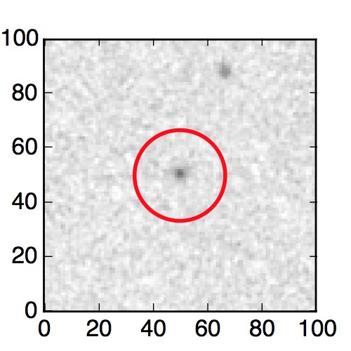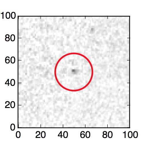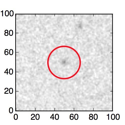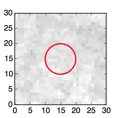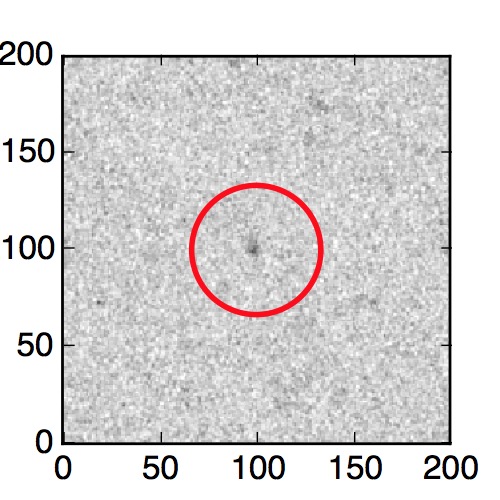 The red circle in the various panels is 1" in radius. The images are 6"x6".