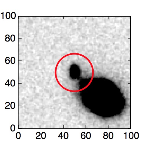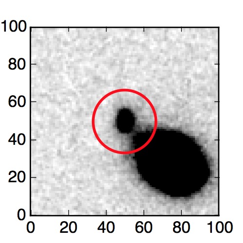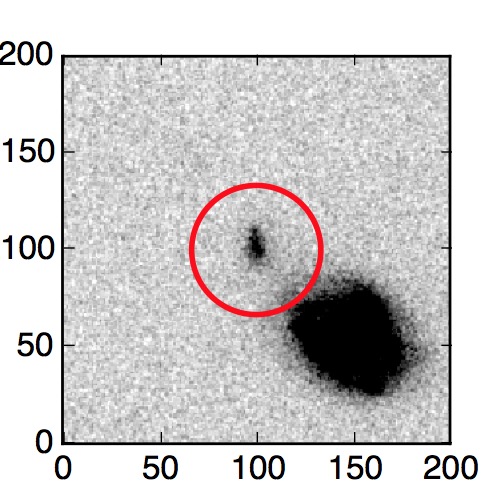 The red circle in the various panels is 1" in radius. The images are 6"x6".
