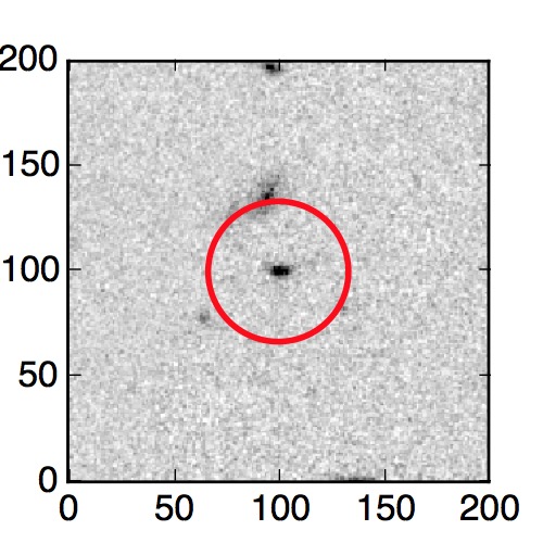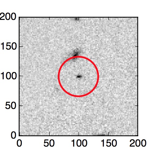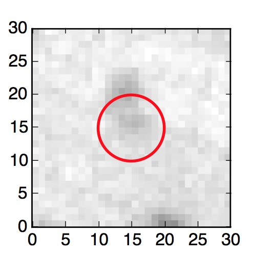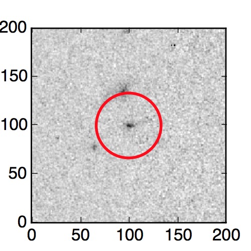 The red circle in the various panels is 1" in radius. The images are 6"x6".