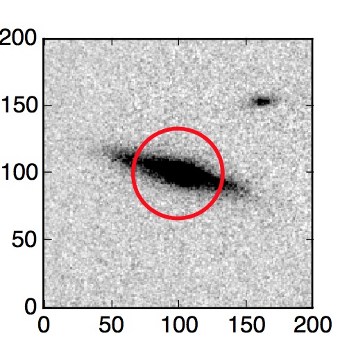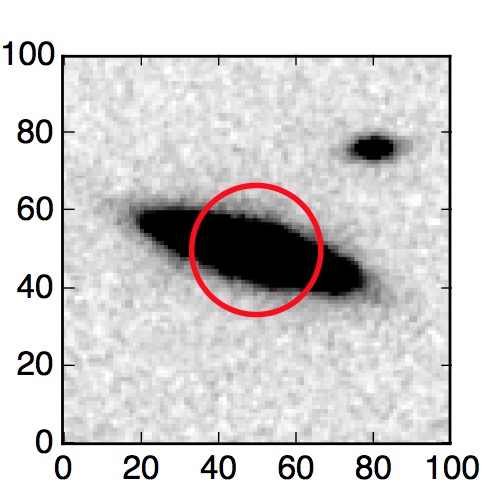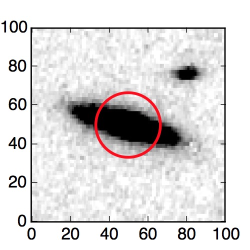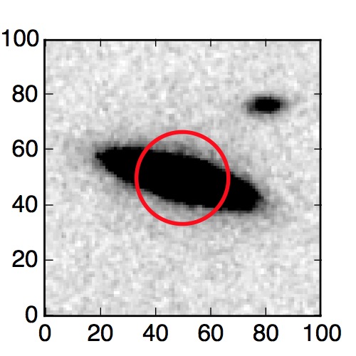 The red circle in the various panels is 1" in radius. The images are 6"x6".