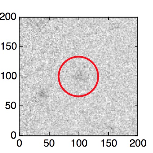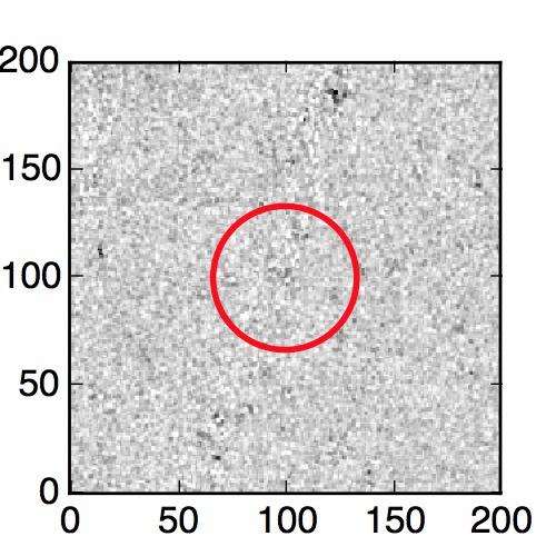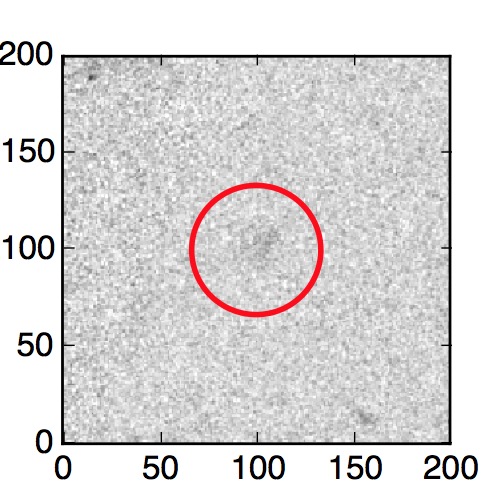 The red circle in the various panels is 1" in radius. The images are 6"x6".