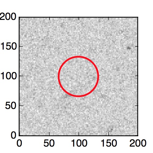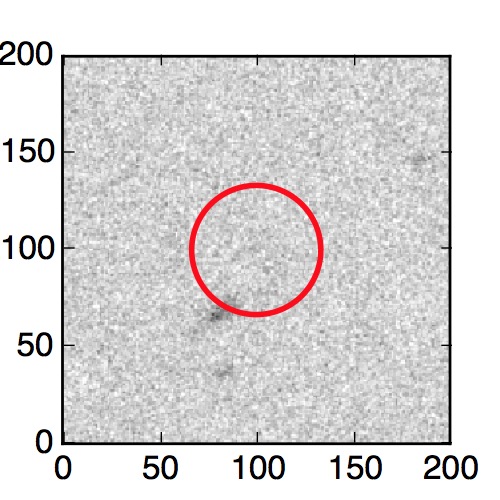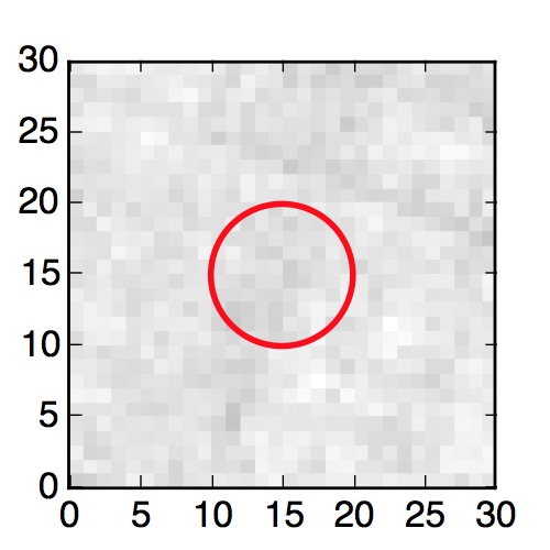 The red circle in the various panels is 1" in radius. The images are 6"x6".