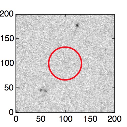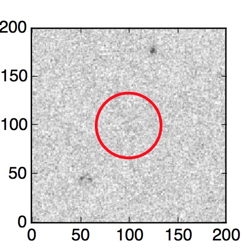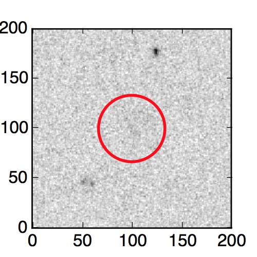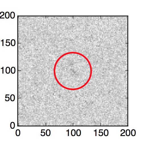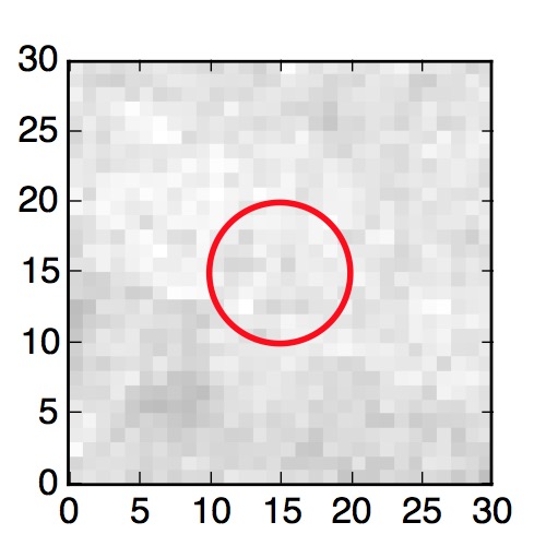The red circle in the various panels is 1" in radius. The images are 6"x6".
