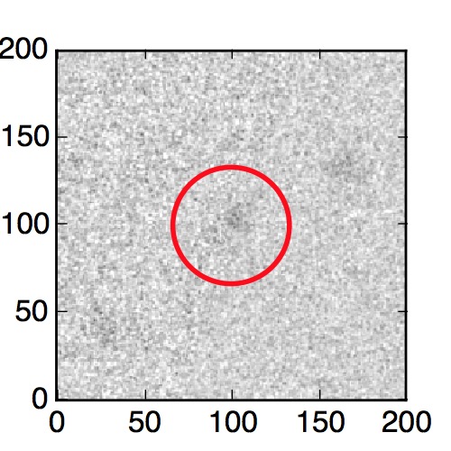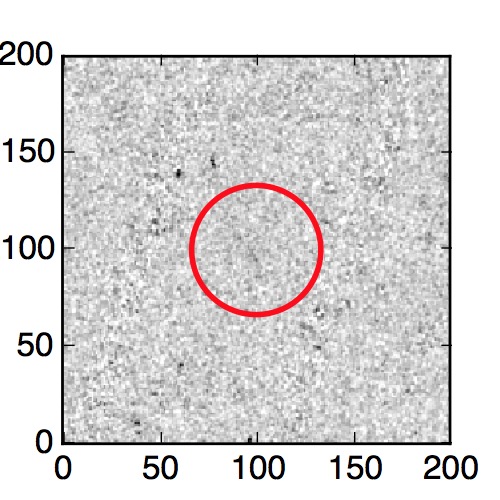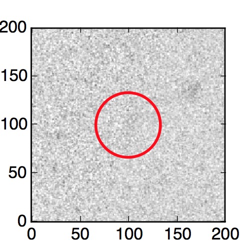The red circle in the various panels is 1" in radius. The images are 6"x6".