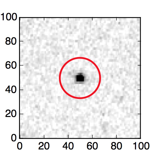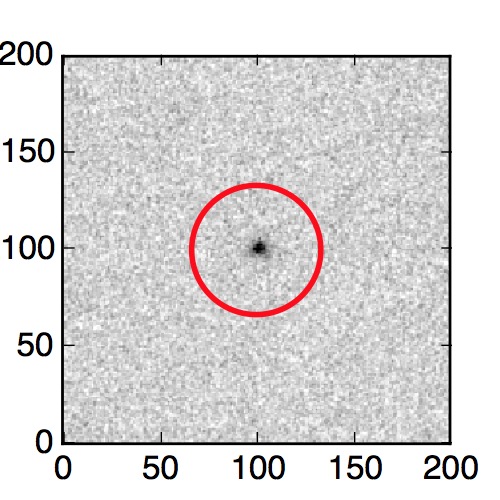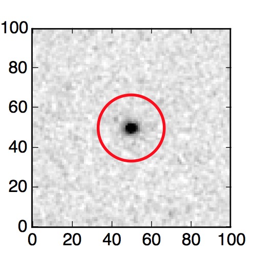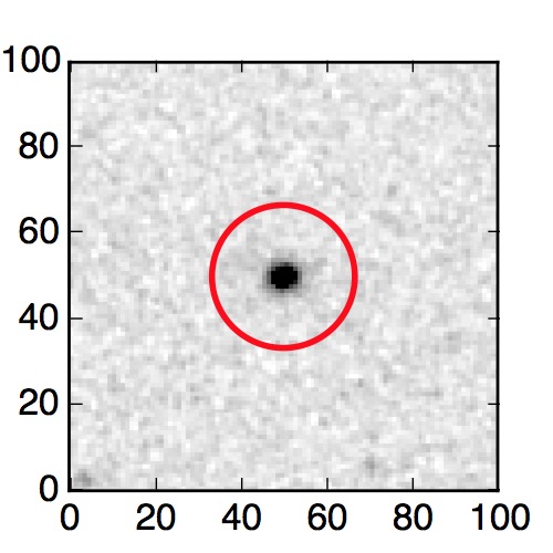 The red circle in the various panels is 1" in radius. The images are 6"x6".