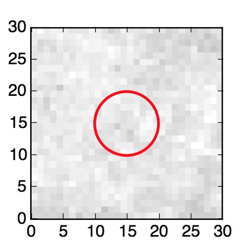 The red circle in the various panels is 1" in radius. The images are 6"x6".