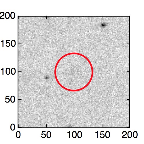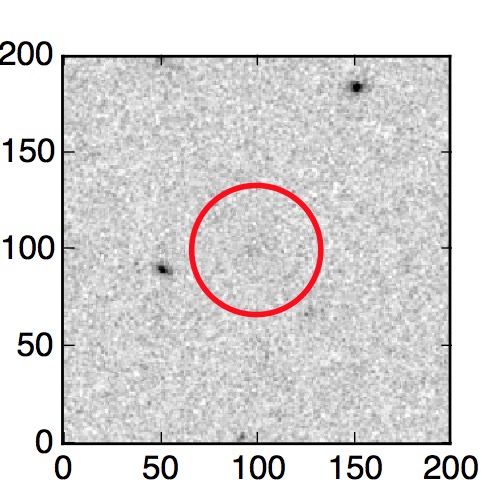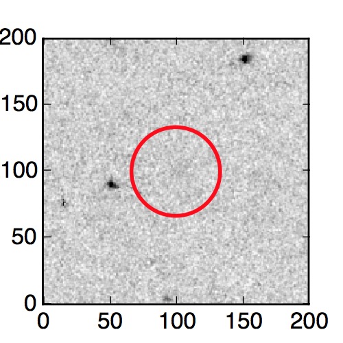 The red circle in the various panels is 1" in radius. The images are 6"x6".