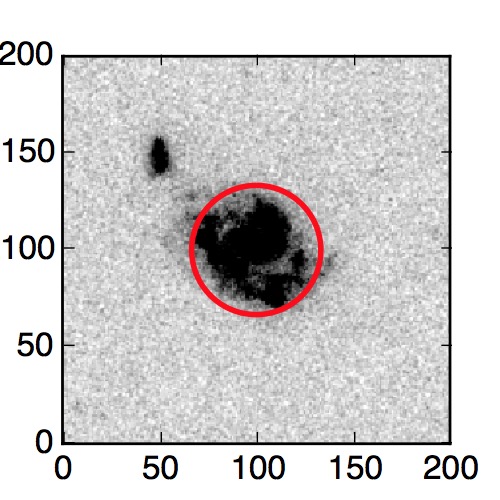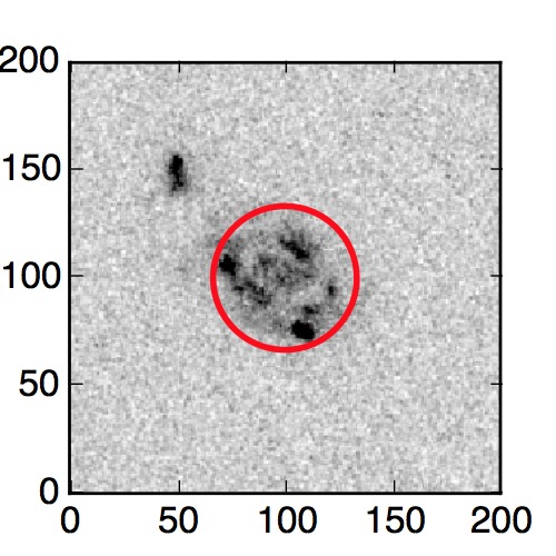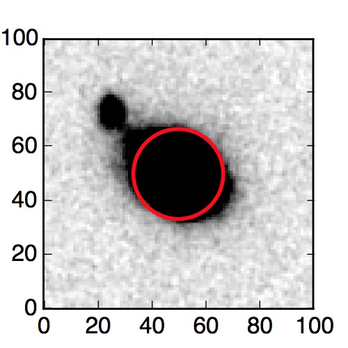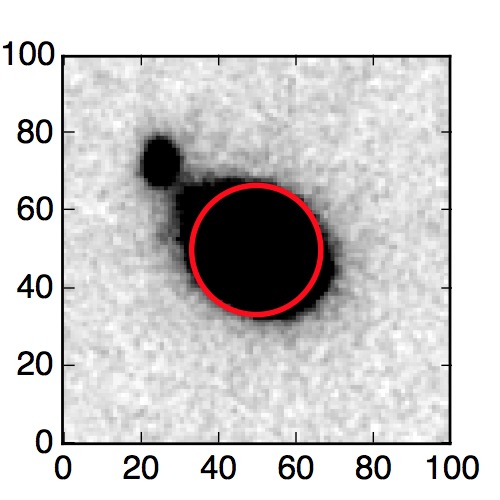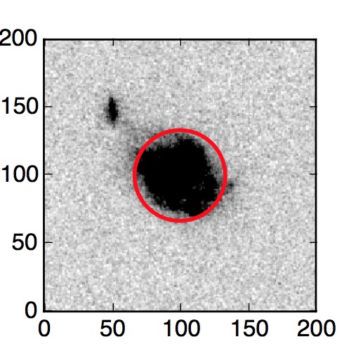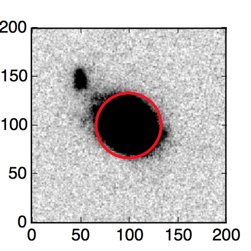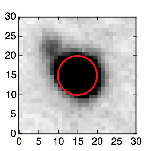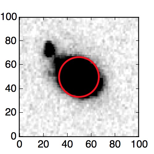 The red circle in the various panels is 1" in radius. The images are 6"x6".