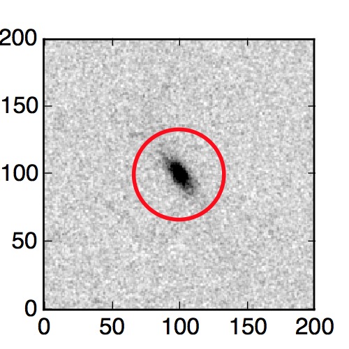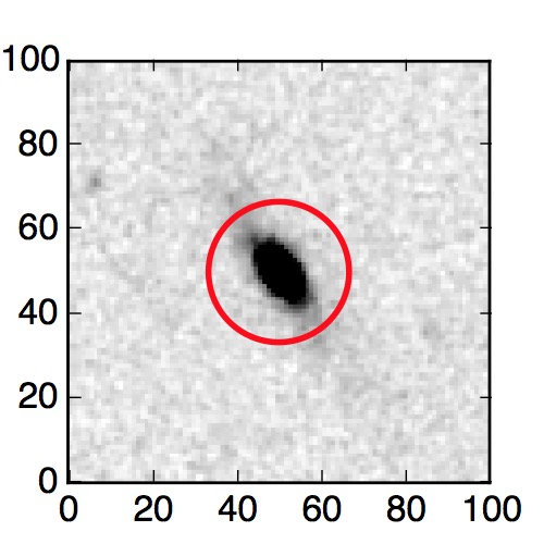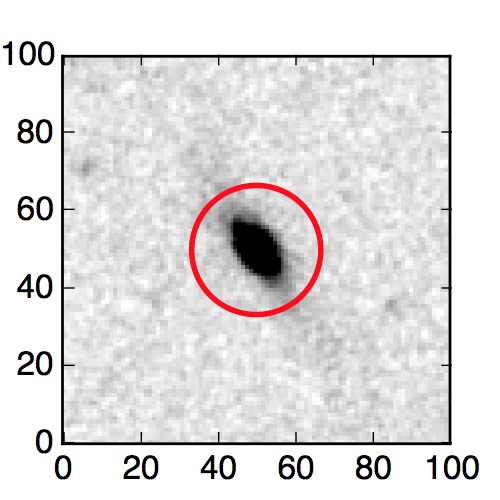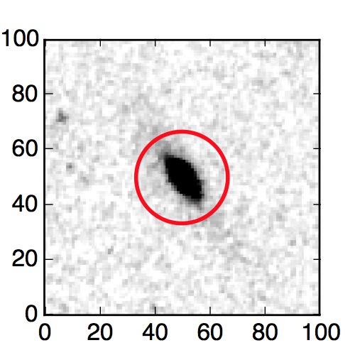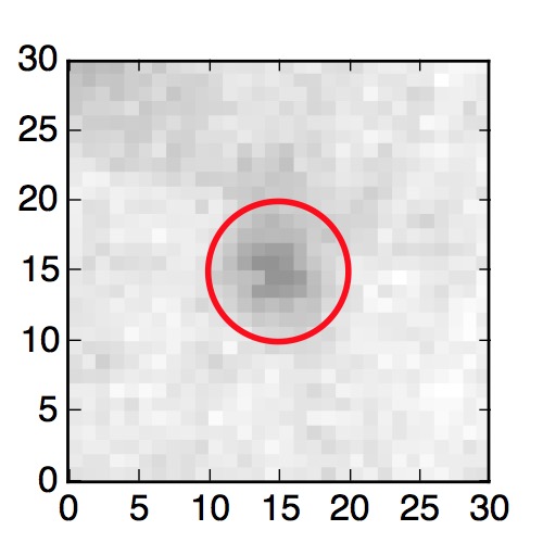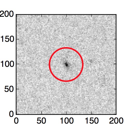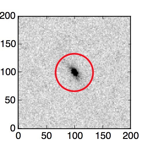 The red circle in the various panels is 1" in radius. The images are 6"x6".
