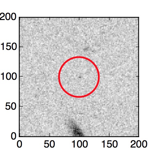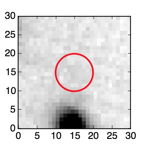 The red circle in the various panels is 1" in radius. The images are 6"x6".