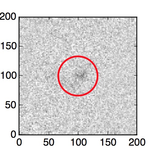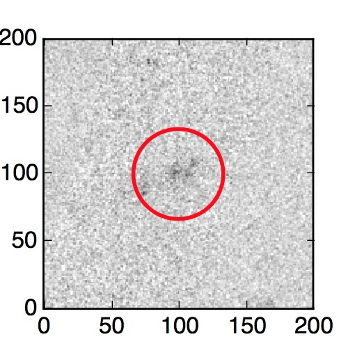 The red circle in the various panels is 1" in radius. The images are 6"x6".