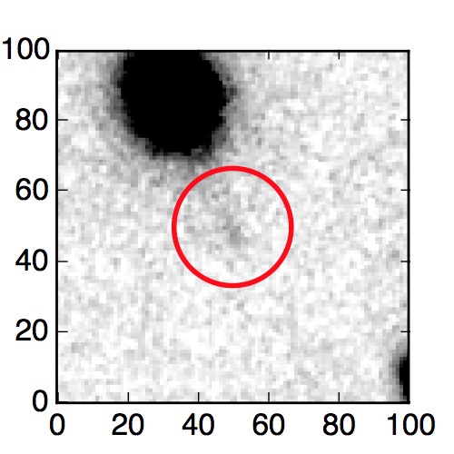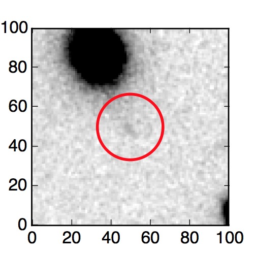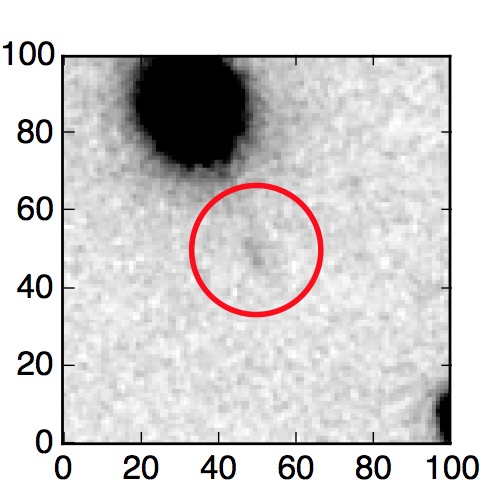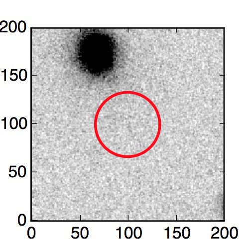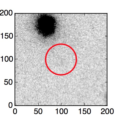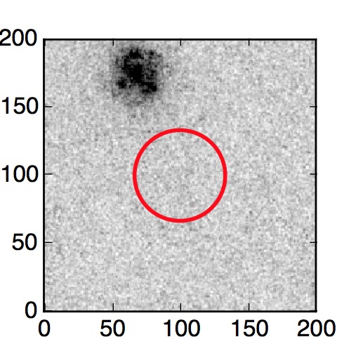 The red circle in the various panels is 1" in radius. The images are 6"x6".