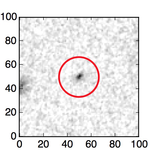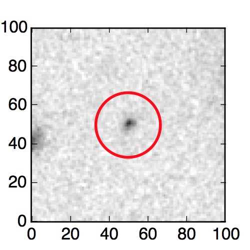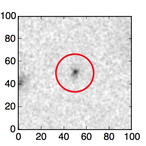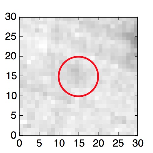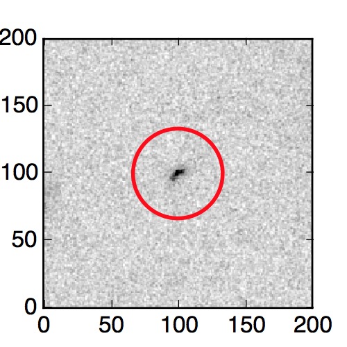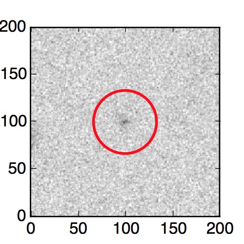 The red circle in the various panels is 1" in radius. The images are 6"x6".