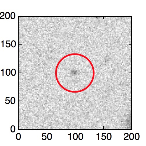 The red circle in the various panels is 1" in radius. The images are 6"x6".